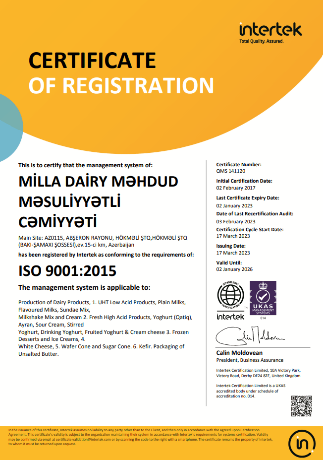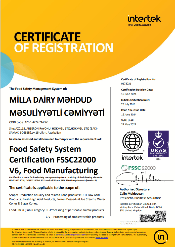 Through close cooperation with the Azerbaijan Institute of Standardisation, as well as ongoing internal reviews and training, we ensure the continuity and improvement of our system.